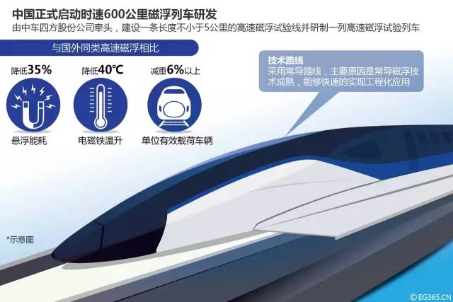 10月21日,我国最大的轨道交通设备制造商中国中车股份有限公司宣布,将启动时速600公里高速磁浮、时速400公里跨国联运高速列车等项目的研发。10月23日,中国中车股份有限公司官方微博发布消息称,包括时速600公里高速磁浮、时速400公里跨国联运高速列车等项目在内的,国家重点研发计划先进轨道交通重点专项首批三个项目在京举行启动会。