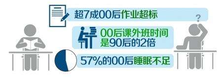 就在10月20日,中国青少年研究中心发布了《“00后”发展状况研究》,调查显示,超7成“00后”作业超标,他们的课外班时间是“90后”的2倍,过半“00后”睡眠不足。