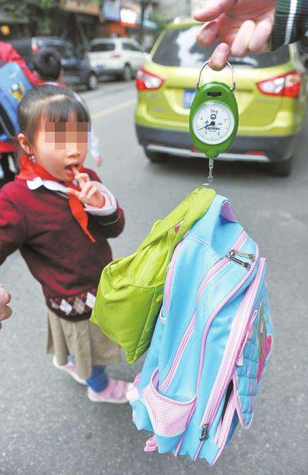 成都某小学一年级学生的书包和饭盒包重量接近7斤。