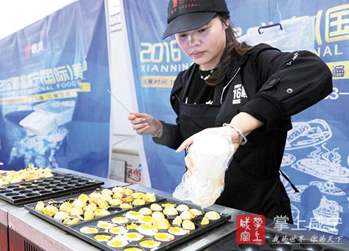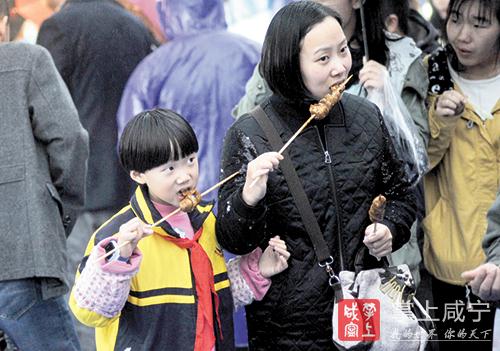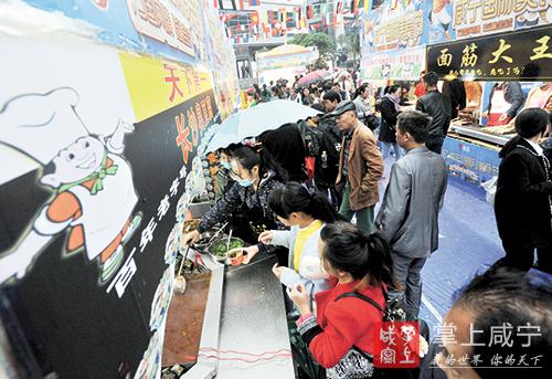 28日上午,小雨淅淅。不到9点,咸宁市温泉谷公园道咸宁首届美食节现场,已被循香而来的“吃货”们挤得水泄不通。