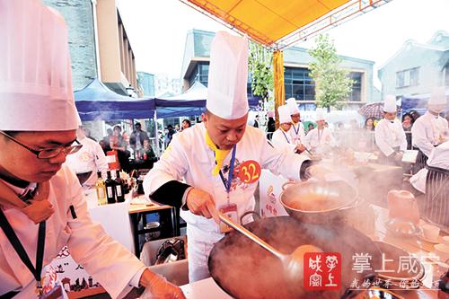 参赛人员紧张操作,10名“吃货”评委也在翘首期待,他们是通过微信比点赞数量“海选”出来的。此外,7名专家评委也将给出专业的评价和打分。当天将进行7场名菜评比,专家评委和吃货评委打分各占80%、20%,最终产生十道咸宁名菜。