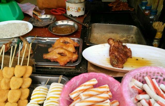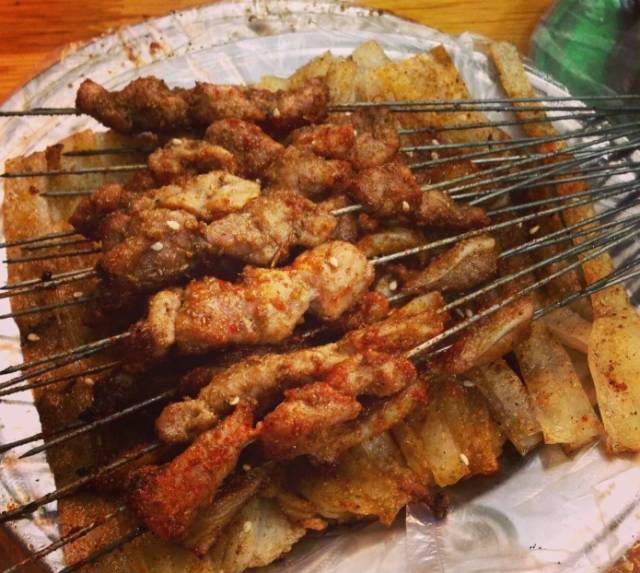 球场路上不大的店子,炒菜烧烤和粥,一应俱全,老板是北方口音。