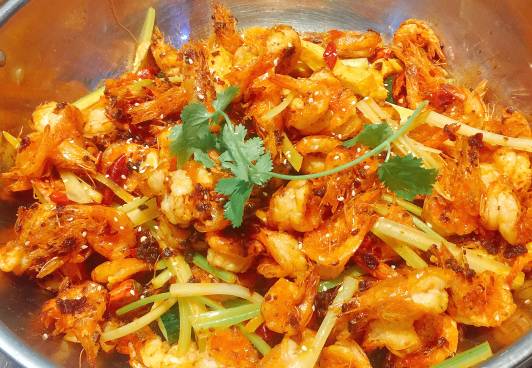 基围虾是武汉最好吃的香辣虾,没有之一,虾子大,还新鲜,里面打底的红薯条,很好吃。