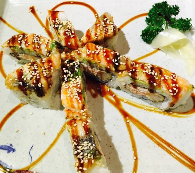 点了每次必点的三文鱼腩刺身,烟熏生牛肉,三文鱼茶泡饭,油炸拉面,烤鸡皮和一些寿司。味道还是一如既往的好。油炸拉面,配上用虾,蟹柳和蘑菇炖的浇头,富有新意。