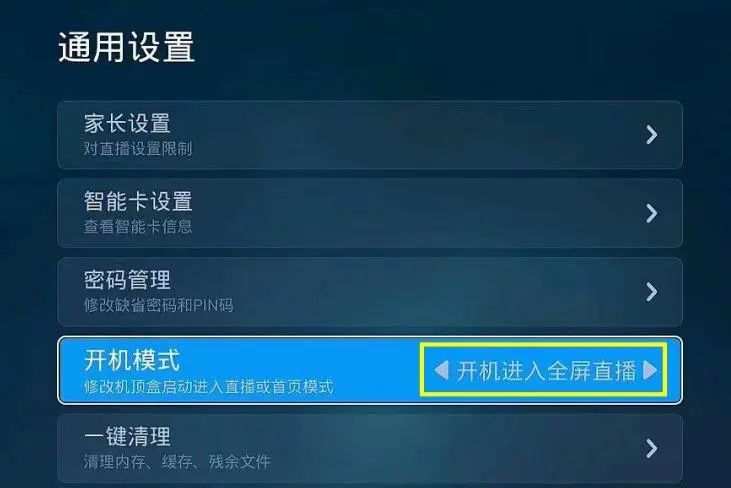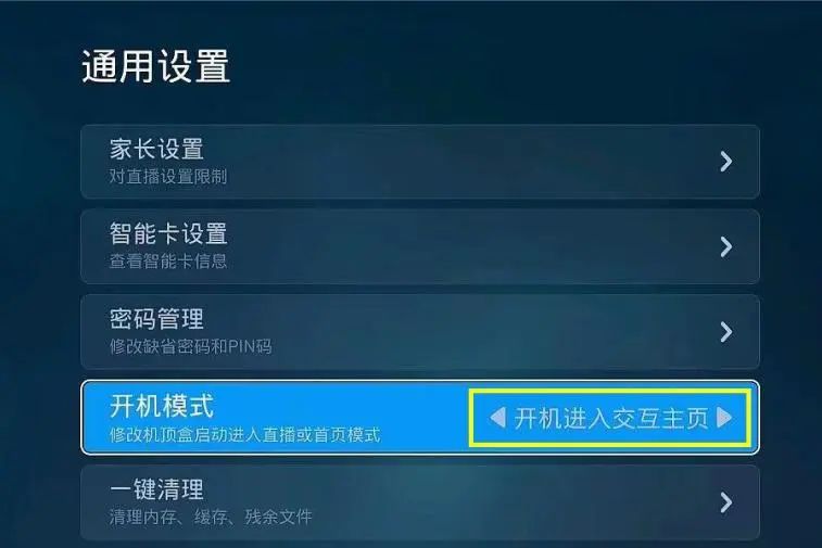 除默认进入直播频道,用户可根据习惯喜好,自主选择开机模式: