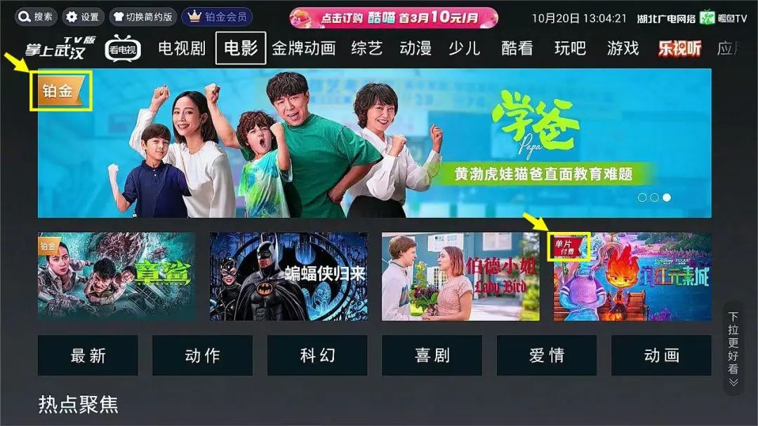 为维护消费者正当权益,通过名称、角标等方式对免费和收费节目进行明确区分,充分保障用户看电视的知情权、选择权。付费点播节目会有“铂金”、“单片付费”、“专区名称”的标识。