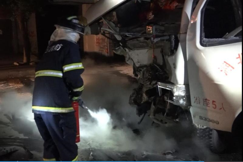 长江云报道(通讯员 陈华飞 )11月6日凌晨3时51分 ,湖北黄石阳新县浮屠镇浮屠街王四小学旁一辆中型货车与一辆SUV迎面相撞,货车车头严重受损,造成两人被困。
