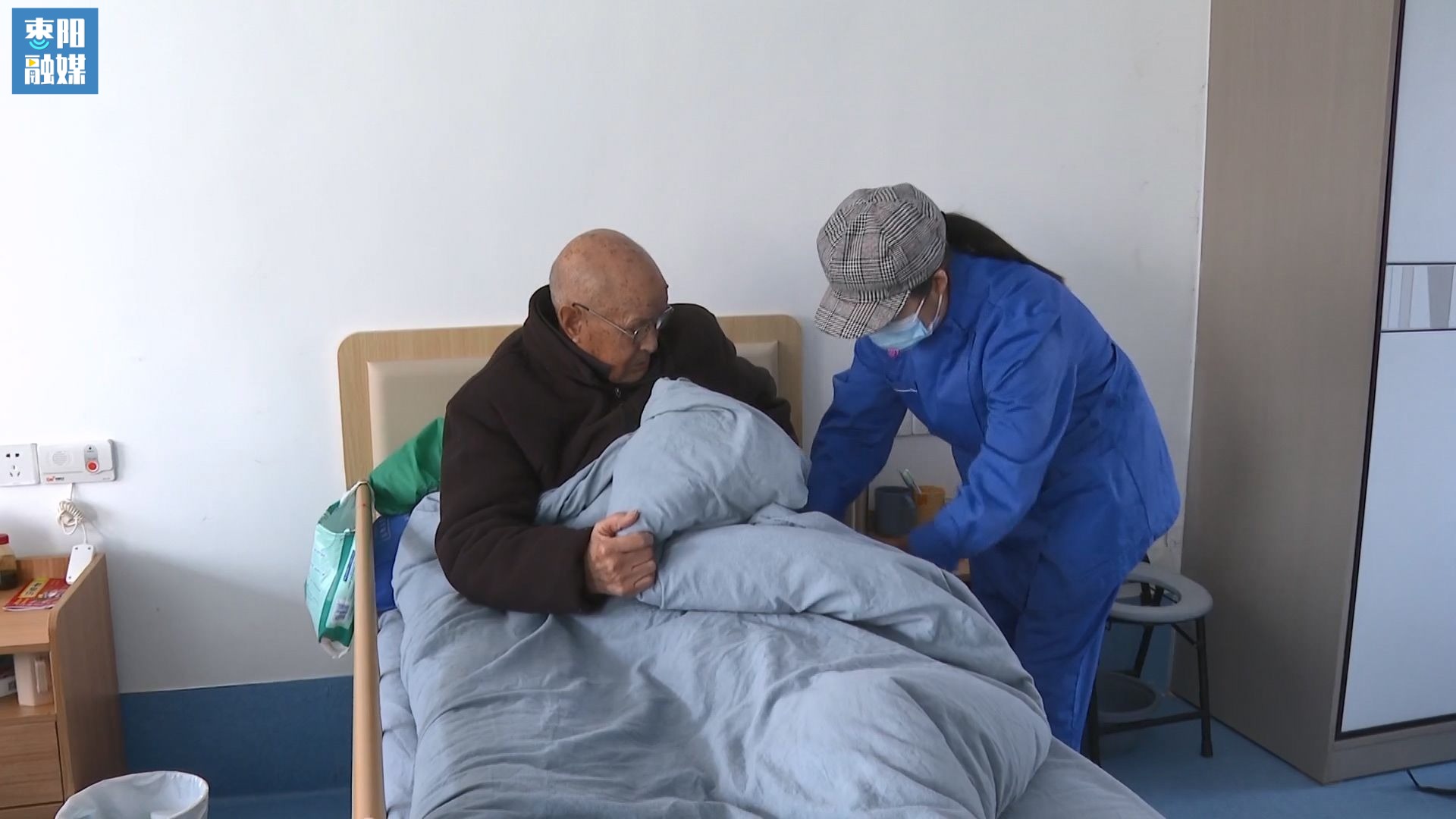 家住枣阳市王城镇的韦远谋今年89岁,2023年10月30日从王城福利院搬进市众康医养中心集中照顾。之前由于身体患病,一直很虚弱,现在枣阳市众康医养中心工作人员的悉心照顾下,身体已逐渐好转。
