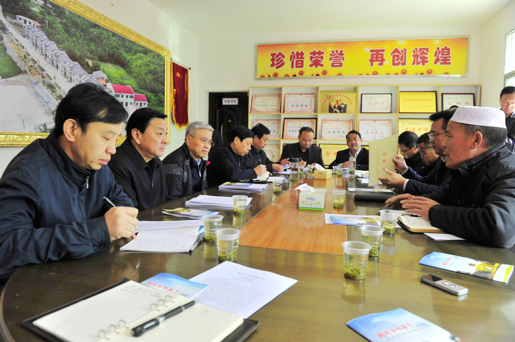 与陕西省商洛接壤的郧西县最偏远乡村湖北口回族乡坎子山村是省交通运输厅综治工作联系点。村里治安状况如何?精准扶贫工作推进怎样?省交通运输厅一直关心、挂念。一大早,何光中一行驱车3个多小时,来到坎子山村。这里海拔1799米,是郧西县海拔最高的村,全村15.5平方公里,只有1400亩耕地,70%是坡地,自然条件差。面对落后的条件,当地群众在村支书、十八大代表魏登殿的带领下,发扬愚公移山精神,打通了6公里多通往外界的 “挂壁公路”,今年又在省交通运输厅的支持下,把这条公路拓宽成5米宽,配套了安保工程。道路条件的改善,使该村的马头羊、高山蔬菜等走出深山,成为抢手货,同时旅游业也得到发展,民族和谐团结,社会平安稳定,一个全县最贫困的穷山村由此走上致富道路。