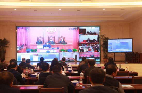 (上图为省、市委政法委及两级政法部门领导干部观摩庭审)
