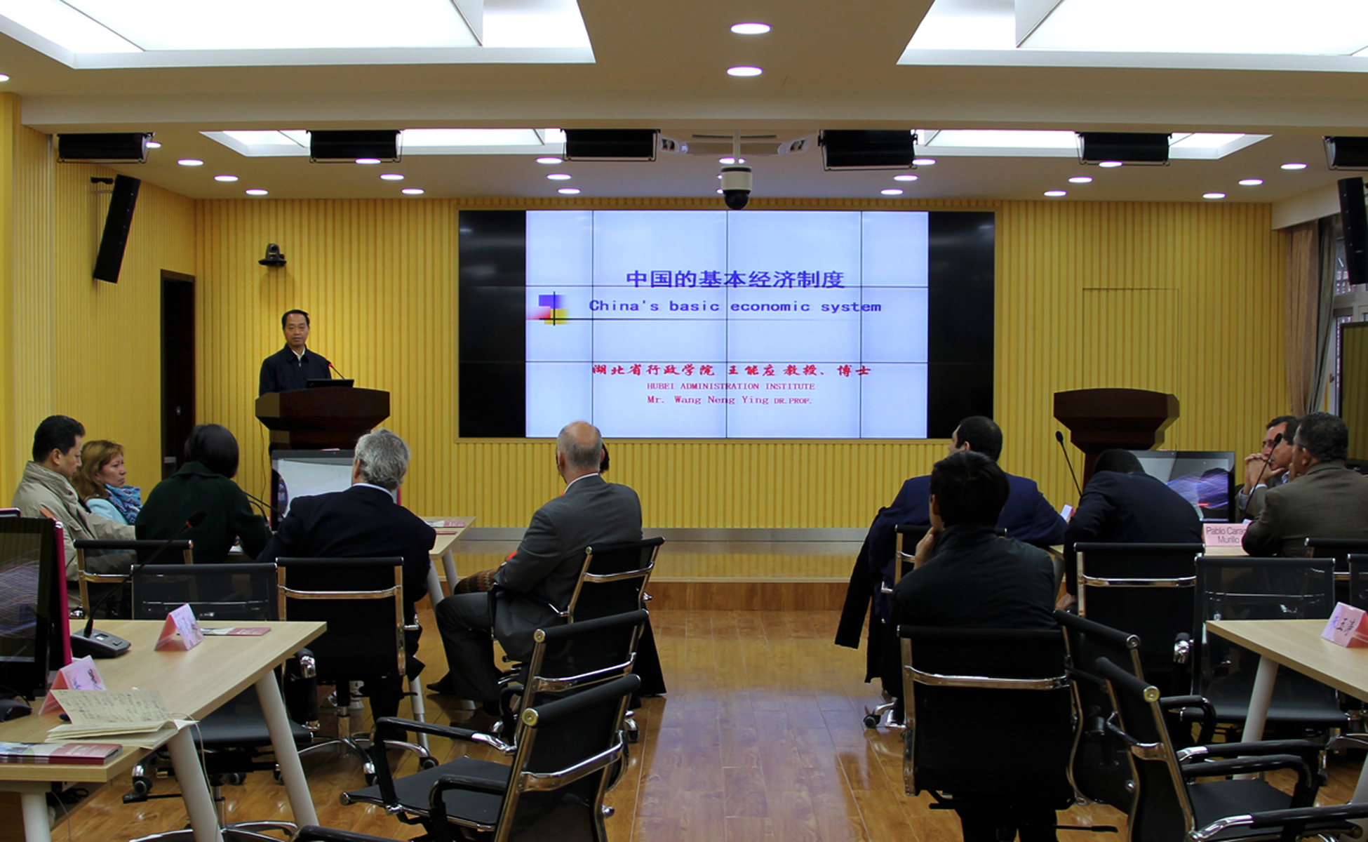 座谈会上,省委党校经济学与经济管理教研部副主任、教授王能应,政法教研部副主任、副教授王辉分别就我国的基本经济制度和政治制度,向考察团一行作了专题介绍。考察团成员表示出浓厚的兴趣,互动环节气氛友好热烈。
