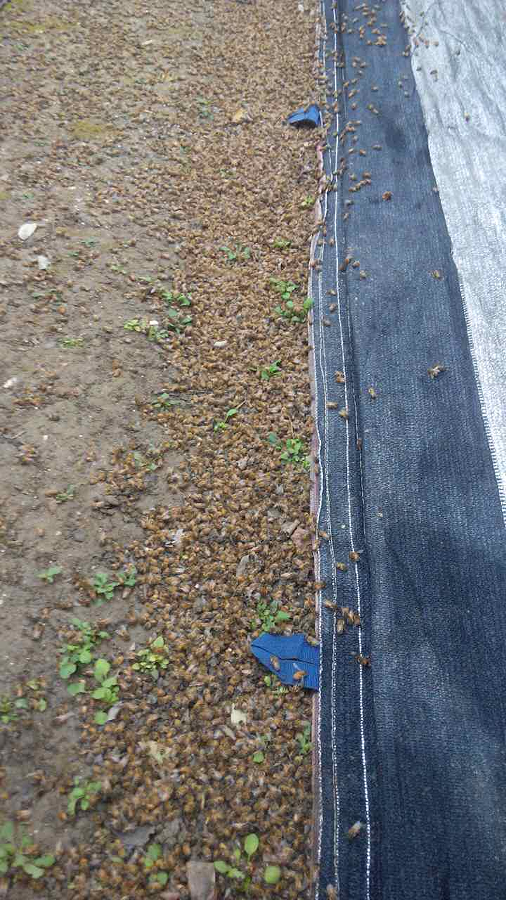 蜜蜂的产蜜期在3月份到9月份,现在这个季节,蜜蜂正常情况下应该安静呆在蜂箱里,像青蛙一样“冬眠”,可在不久前,蜜蜂突然扎堆飞出蜂箱,一出来过不了多久就死亡。蜂农们根本来不及采取措施,发现蜜蜂大量死亡之后,乡亲们也找了原因,逐一分析爬蜂病、蜂螨病、白垩病这些蜜蜂常见病,但发现症状不符。从外观看,死蜂的颜色和体征都正常,但是拿手一捏,死蜂分泌出来的液体颜色不正常,像污水一样,呈深咖啡色。