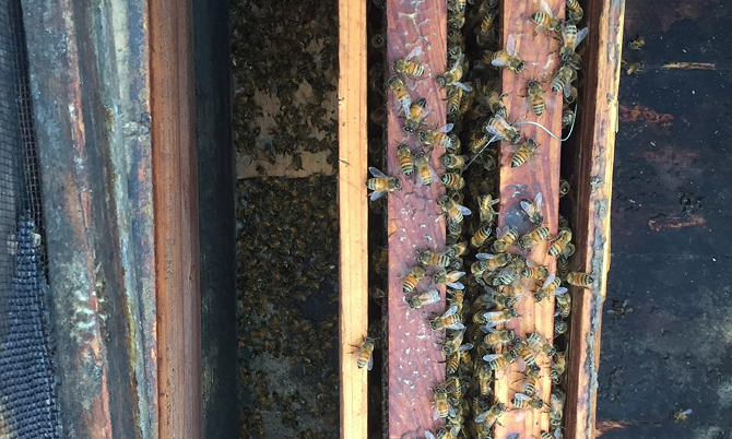 附近不少乡亲养殖的蜜蜂都出现了这种情况,邻村的祝师傅家情况最严重,87个蜂箱只剩不到一千只蜜蜂。而在高峰期时,一个蜂箱里会有2万只蜜蜂,放眼望去,地面上、蜂箱中都飘着厚厚的一层死蜜蜂。