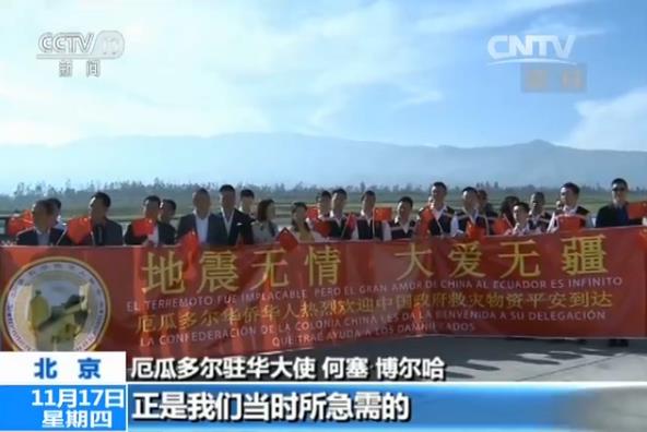 厄瓜多尔驻华大使 何塞·博尔哈:中国为厄瓜多尔提供了及时的经济援助,并派出了本国的救援队。他们在抗震救灾中发挥了重要的作用。此外,中国还向厄瓜多尔派出了五架载有人道主义救援物资的飞机。这批物资的内容由中方事先咨询了厄瓜多尔的相关救援机构,因此我们收到的物资正是我们当时所急需的。