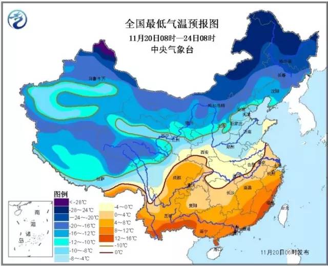 接下来这张是全国最低气温预报图