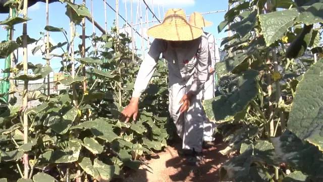这里是南沙的渚碧礁的生态农场,在这个不到三亩地的生态农场里,不光种有黄瓜、西红柿,辣椒等30多种的各种时令蔬菜瓜果,它的建成极大地缓解了南沙守礁官兵和南沙建设者们吃菜难的问题。