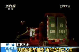 11月14号晚,江苏省宿迁市一辆物流货车同样发生自燃起火。所幸车内快递刚刚被送到仓库,快递车驾驶员说,可能开车运送快递货物,路程较远,发动机超负荷运作过热,才会导致货车起火。