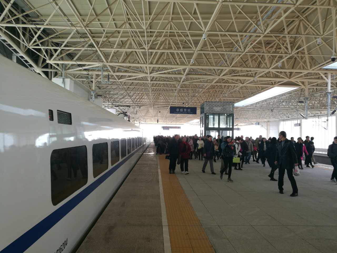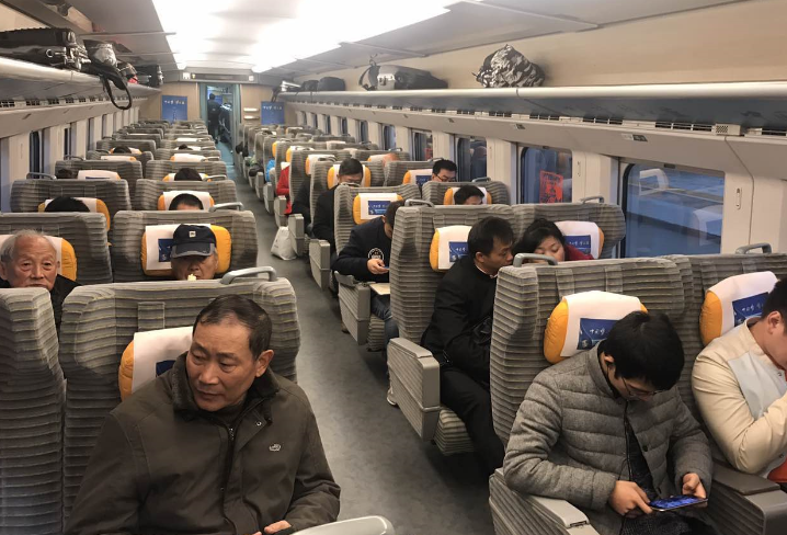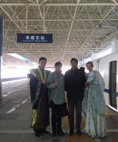 从武汉到达孝感东站,一共用了47分钟,车上很多旅客都是专门来体验尝鲜的。
