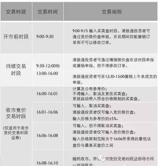 港股通交易规则 投资者买卖港股通股票的交易时间应遵守联交所规定,即交易日的9:00至9:30为集合竞价时段,9:30至12:00以及13:00至16:00为连续竞价时段。16:00至16:10为收市竞价时段。