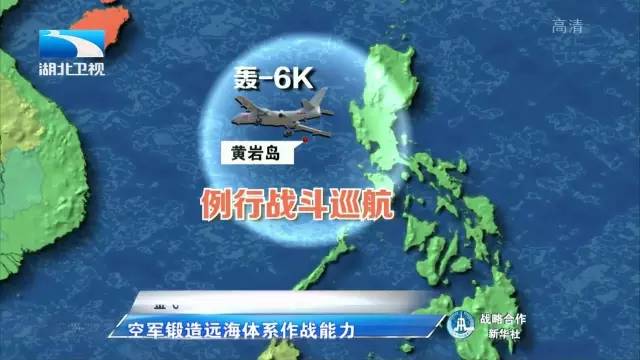 这次南海战巡,空军出动轰-6K飞机赴黄岩岛等岛礁附近空域进行了巡航。轰-6K和歼击机、侦察机、空中加油机等遂行战巡任务,以空中侦察、对抗空战和岛礁巡航为主要样式组织行动,达成了战斗巡航目的。