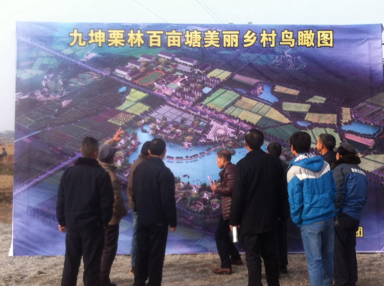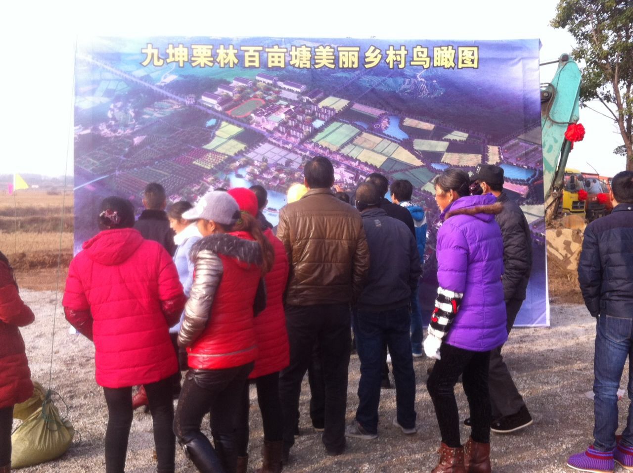 “家乡绝不能成为留守的家乡、记忆中的故园。”去年春节回乡的时候,许记坤决定出资2亿元,依托百亩塘自然墩原始风貌,不要乡亲们掏一分钱,建设九坤栗林百亩塘美丽乡村,将家乡打造成一个宜居、宜业、宜游的文化风情小镇,誓让家乡旧貌换新颜。