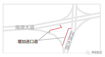 南湖大道与民族大道、关山大道交会路口,增加车道