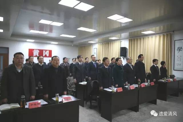 全会结束后,全体市纪委委员起立奏唱《黄冈纪检铁军之歌》。