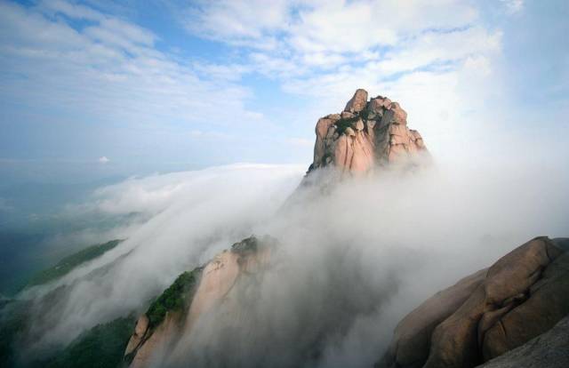 它远离喧嚣,植被茂盛,生态良好,环境清幽,堪称天然氧吧。天柱山极顶,置身云端,俯瞰千障,群山拱抱,云蒸雾绕,千山万壑,尽收眼底。