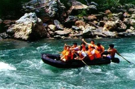 丹水漂流是1人或2人乘坐一艘橡皮小舟,手握一块1米长的木桨,自己划桨,自由放漂,过激流,经险滩,回旋于巨石之间,跌宕于碧潭之中,在左躲右闪、惊涛险浪之中领略与大自然搏斗的快感。