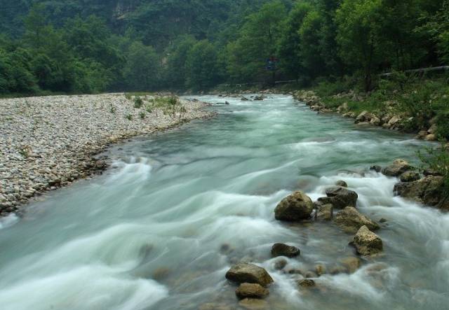 河水九弯十八拐,一弯一拐,一滩一潭,橡皮舟一路起伏跳动,水笑山跑,浪漫、惊险、刺激。丹水绕群峰而过,山水相映,构成秀美绝伦的山水画卷,满眼都是风景。