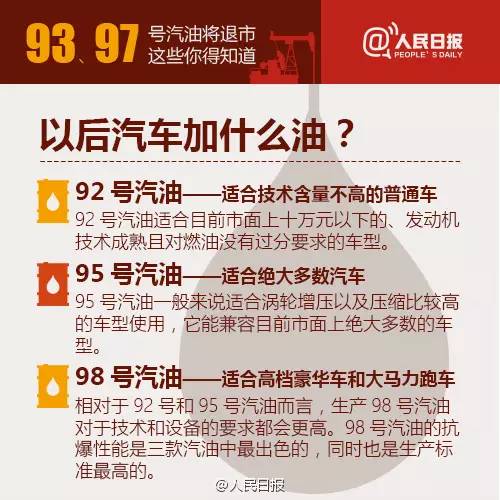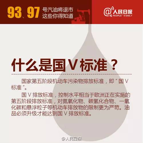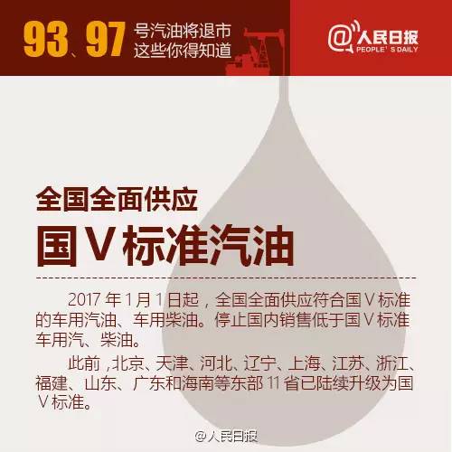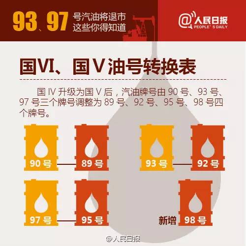 2017年1月1日起,国内将全面供应国V标准成品油,汽油牌号由90号、93号、97号调整为89号、92号、95号、98号四个牌号。