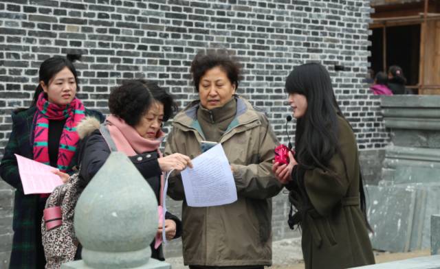 几位大姐正在仔细阅读了解宝堂寺历史