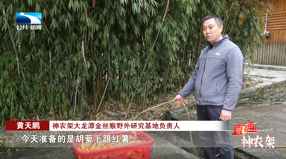 神农架大龙潭金丝猴野外研究基地负责人 黄天鹏:“今天准备的是胡萝卜跟红薯,红薯淀粉比较多,胡萝卜补充维生素。”