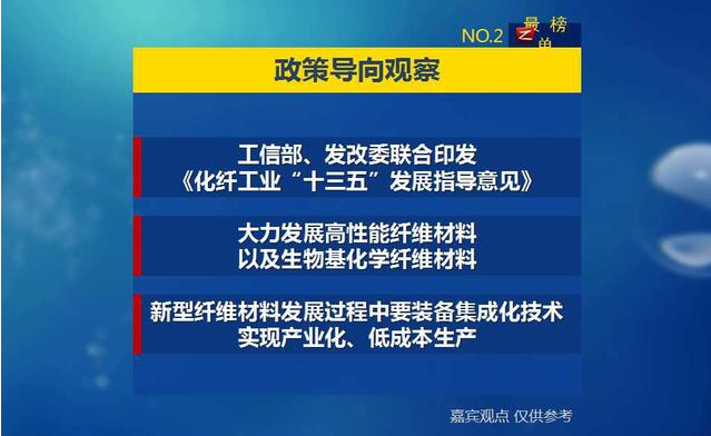 从政府导向看,去年年底工信部、发改委联合印发《化纤工业"十三五"发展指导意见》。意见指出要大力发展高性能纤维材料以及生物基化学纤维材料,并且强调在新型纤维材料发展的过程中要装备集成化技术,实现产业化、低成本生产。