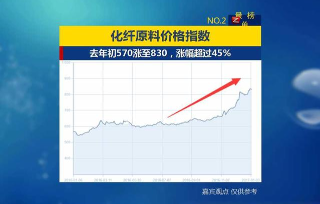 化纤原料价格指数显示该指数多去年初的570己涨至830,涨幅超过45%。