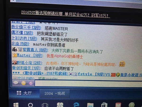 在与古力结束最后一场人机战后,“Master”账号在对弈网站留言板上说:“我是AlphaGo的黄博士。”黄士杰(Aja Huang)是AlphaGo团队的核心成员,在2016年3月份与李世石的人机大战时,黄博士就充当AlphaGo的人肉臂,为其摆棋。