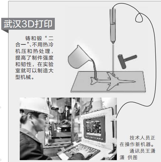 华中科技大学技术人员正在检修铸锻一体化3D打印设备 记者任勇 摄