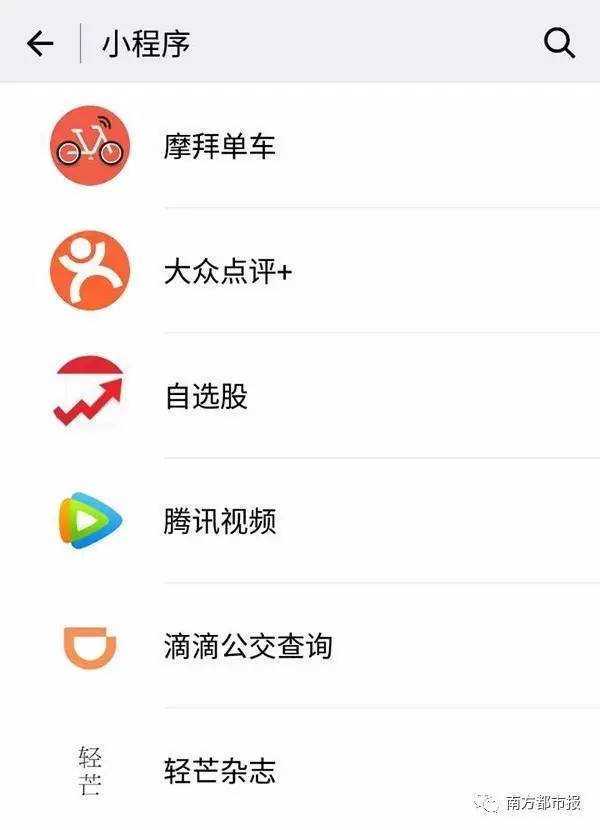 值得注意的是,如早前张小龙在微信公开课所讲,小程序是被动的,没有聚合的推荐页面。除此之外,经南都君测试发现,小程序比公众号更难被搜索到。