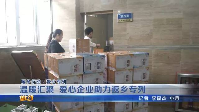 广州大积和食品运营公司,经常参与各种公益事业,为了让外出务工人员,感受到回家的温暖,他们为每一位返乡的乘客都准备了一份爱心物资。公司负责人抄秋霞是河南人,她说:“我们能够理解外出打工回家的不容易,所以准备了1500份礼品,送给返乡的乘客。”