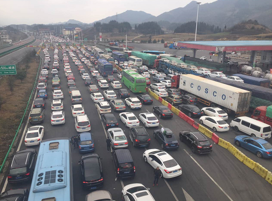 (沪渝高速白羊塘收费站从湖北进入重庆的排队车辆)