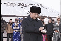 △ 2014年春节前夕,习近平主席到内蒙古自治区锡林浩特市宝力根苏木(乡),用蒙古族传统祈福方式为少数民族同胞祈福。