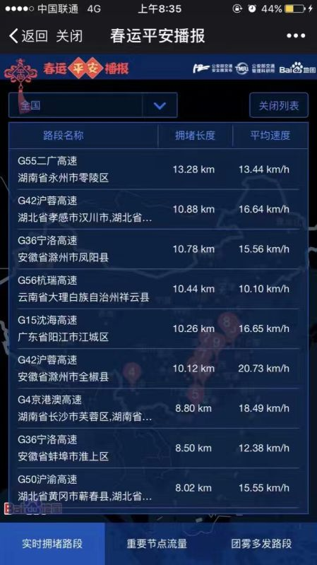 (武荆高速堵进拥堵排行榜。截止2日上午8时25分)