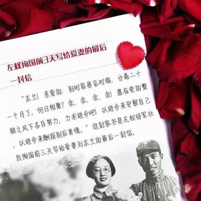 念念念念:“志兰!亲爱的:别时容易见时难,分离二十一个月了,何日相聚?念、念、念、念!愿在党的整顿之风下各自努力,力求进步吧!以进步来安慰自己,以进步来酬报别后衷情。”这封家书是左权将军壮烈殉国前三天写给爱妻刘志兰的最后一封信。