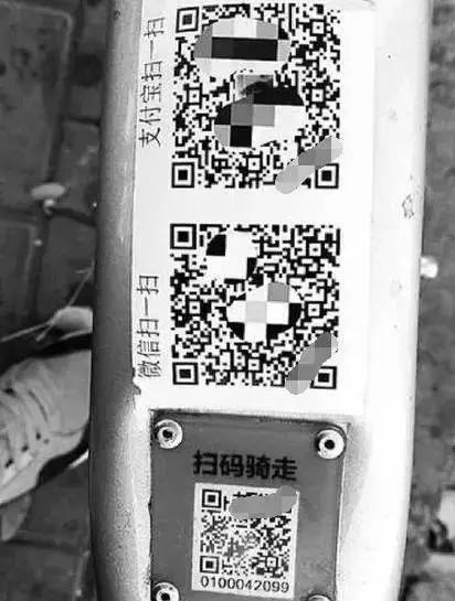 日前,南京市民刘先生反映,几天前,他看到路边停放着几辆共享单车,并且在单车的“扫码骑走”上方还贴着其他两个二维码……