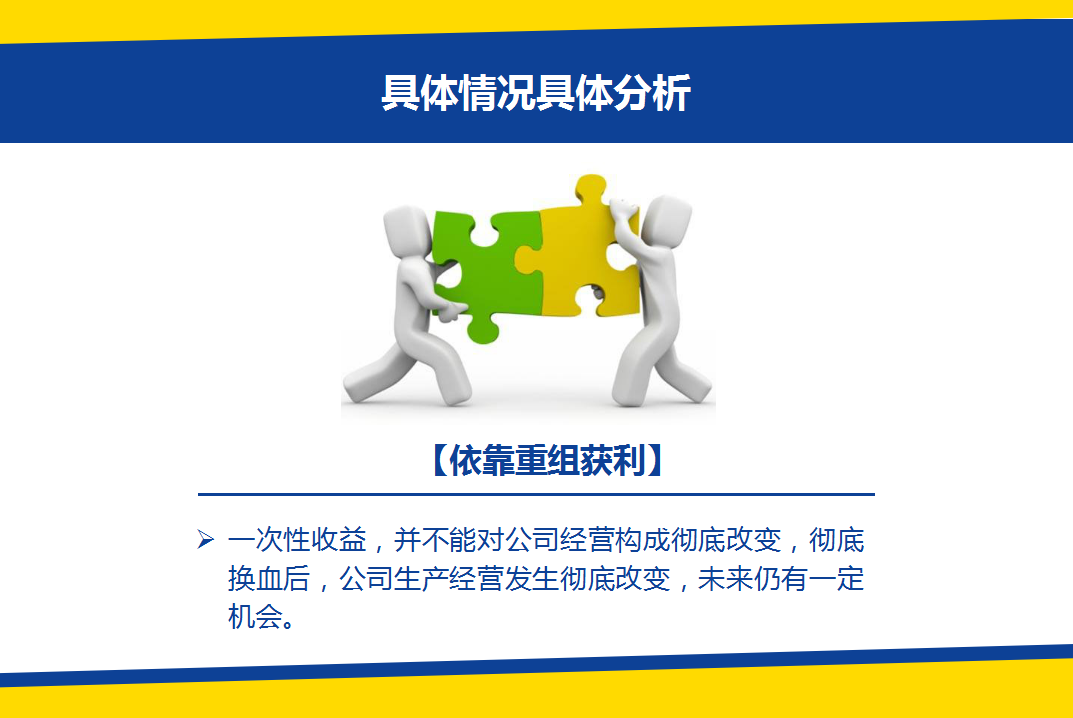 如果是一次性收益,如出售资产或者拿到补贴等,并不能对公司经营构成彻底改变,长远看也不能提升估值,如苏宁本次就是出售了子公司。如果是彻底换血后,公司生产经营发生彻底改变,则未来仍有一定机会,但前提是股价不能太高,如中油资本是将中石油旗下的金控平台资产注入,但公司现在总市值已经达到了1750亿以上,还有多少投资和投机价值呢?