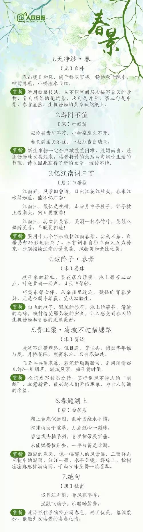 春天真的来了。古往今来,无数文人墨客对“春”情有独钟。春雨:“随风潜入夜,润物细无声”;春景:“满园春色关不住,一枝红杏出墙来”;春风:“东风忽起垂杨舞,更作荷心万点声”……56首诗词写尽春天,不同意象,不同趣味。品读,学习!