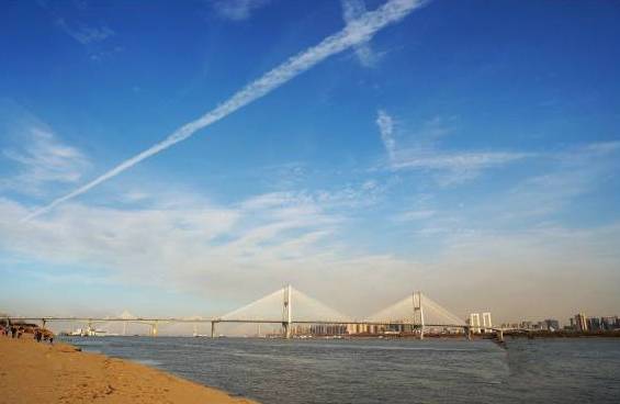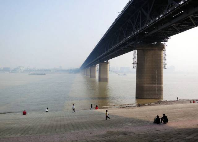 从汉口江滩防洪纪念碑往长江二桥方向直行,经过长江二桥继续前行可以到达二七长江大桥,这条线路四季游人如织。