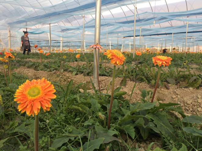 2016年3月,吴望金投资60万元,流转了通城县石南镇赛公村11组这片30多亩的土地,搭建了大棚35个,种植6个品种的非洲菊16万株。经过精心管理,去冬今春,吴望金靠卖非洲菊就已经收回了一半的投资。