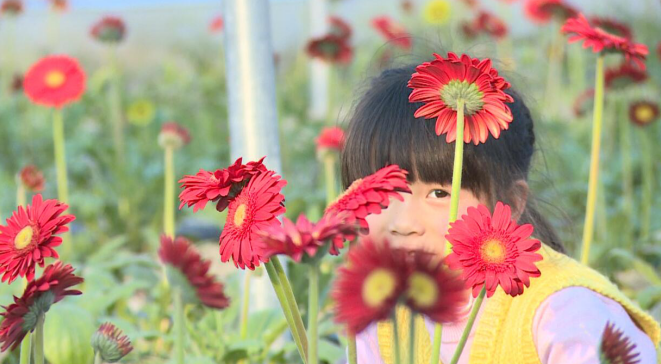原来,吴望金种植的菊花叫非洲菊,与我们平常泡茶喝的保健菊花不一样。非洲菊原产于南非,因其花朵形状像太阳又叫太阳花,有红色、白色、黄色、紫色、橙色、粉色等多种颜色,是一种一次栽种多年开花的植物。在花语当中,非洲菊象征“热情、快乐、热爱生活、红火喜庆”,常常被人们用于家庭插花和制作花篮,为各种庆典以及婚丧嫁娶等活动营造氛围。