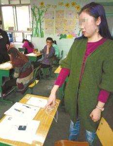 ↑使用微型器材作弊的考生被挡获。